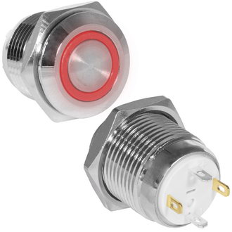 Кнопка антивандальная RUICHI GQ16F-10E/J/R/N, OFF-(ON), рабочая температура -25…+55 °C, никелированная латунь максимально долговечна и надежна. Устройство способно безотказно работать при частой эксплуатации и самых тяжелых условиях. Именно поэтому такие кнопки устанавливаются в тех местах, где существует повышенный риск повреждения, например, на производственных предприятиях или объектах с большой проходимостью людей. Антивандальные кнопки часто можно встретить в лифтах, около входных дверей зданий или метрополитене.