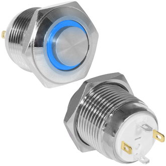 Кнопка антивандальная RUICHI GQ16H-10E/J/B/N, OFF-(ON), рабочая температура -25…+55 °C, никелированная латунь максимально долговечна и надежна. Устройство способно безотказно работать при частой эксплуатации и самых тяжелых условиях. Именно поэтому такие кнопки устанавливаются в тех местах, где существует повышенный риск повреждения, например, на производственных предприятиях или объектах с большой проходимостью людей. Антивандальные кнопки часто можно встретить в лифтах, около входных дверей зданий или метрополитене.